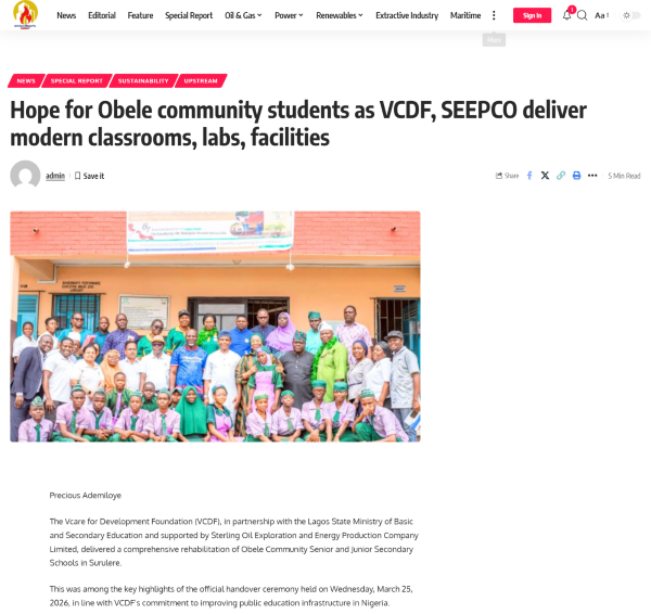 VCDF’s National Programme Manager, James Olabi Odey, said the Obele intervention is part of a broader effort to expand access to quality education nationwide. According to him, the Model School Initiative has already reached over 28,000 beneficiaries across Lagos, Delta, and Akwa Ibom States.